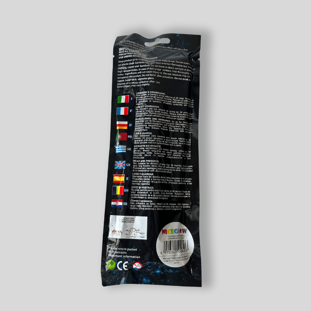 Wystarczy, że złamiesz glow sticki, odpowiednio je złączysz zgodnie z instrukcją i gotowe! Twój nowy gadżet zabłyśnie fluorescencyjnym, neonowym światłem, które rozbłyśnie wokół Ciebie. Czapka z daszkiem z glow stickami to idealny sposób na przykuwanie uwagi, bawiąc się światłem na parkiecie, podczas koncertu lub na festiwalu.
